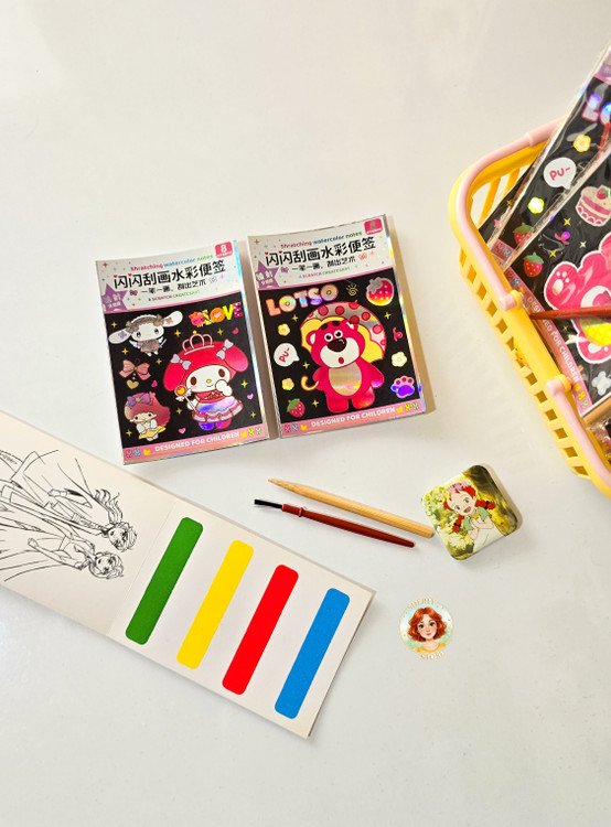 .دارای قلم برای رنگ آمیزی آبرنگی ، داری یه قلم دگ برای صفحات زغالی